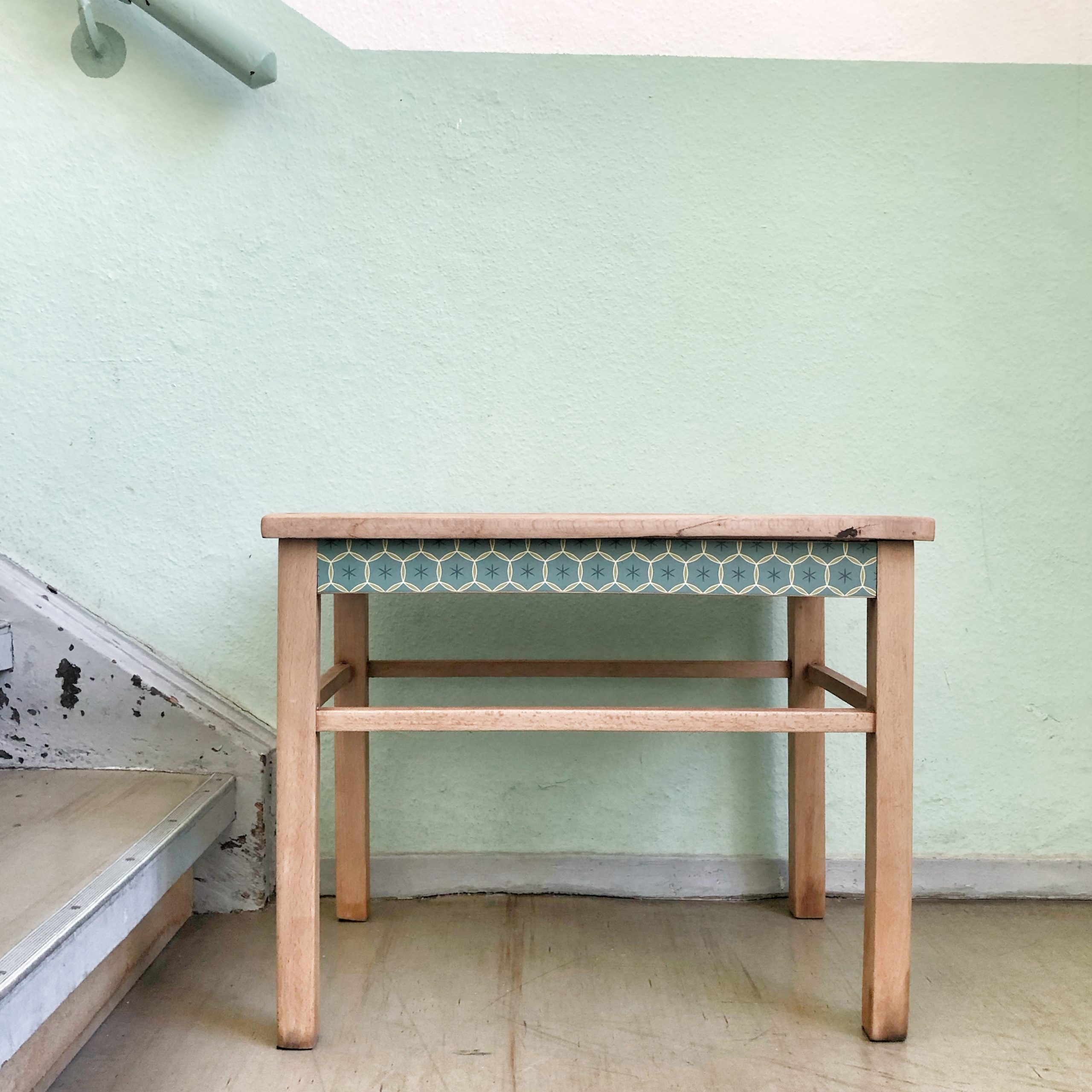 Beistellschrank / Nachtschrank mit hellgrüner Linoleumplatte